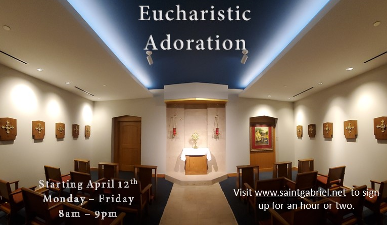 * Wednesday Adoration 8am-6pm; Rosary, Evening Prayer, Benediction begins at 5pm.